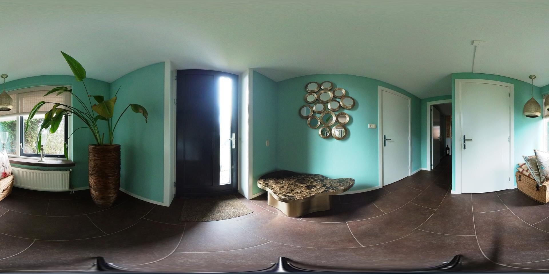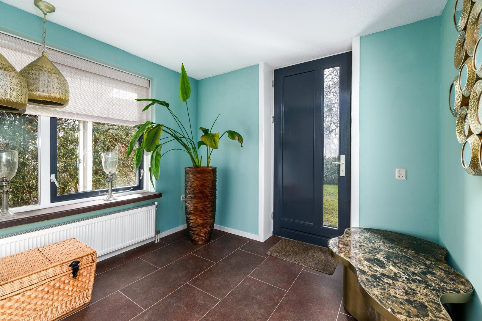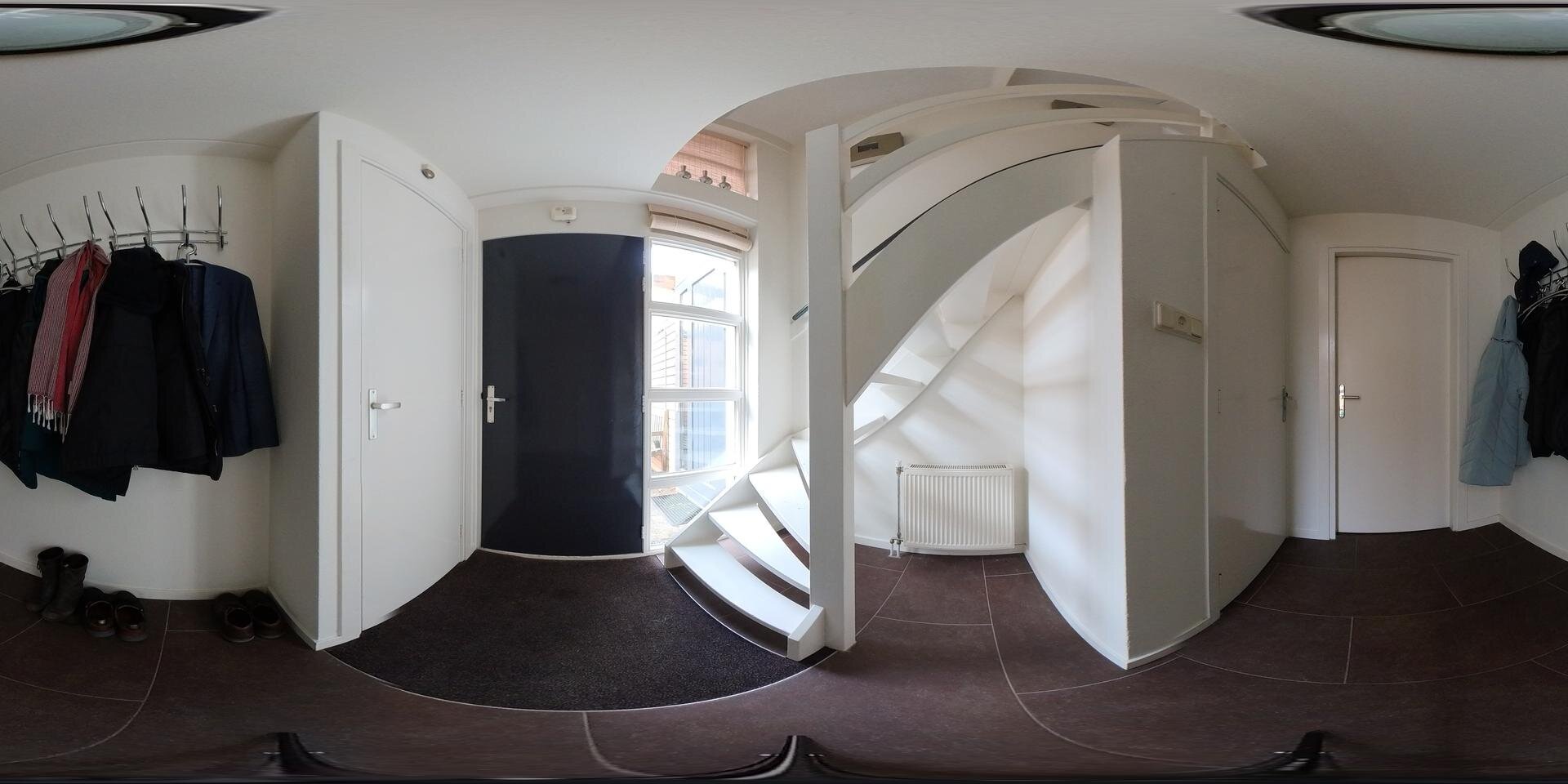 Het pand heeft een dubbele entree en we bellen aan op de linker flank, bereikbaar via de oprit. Je stapt binnen in een ruime entree/hal met garderobe en toilet. Hier is ook de trapopgang naar de verdieping.