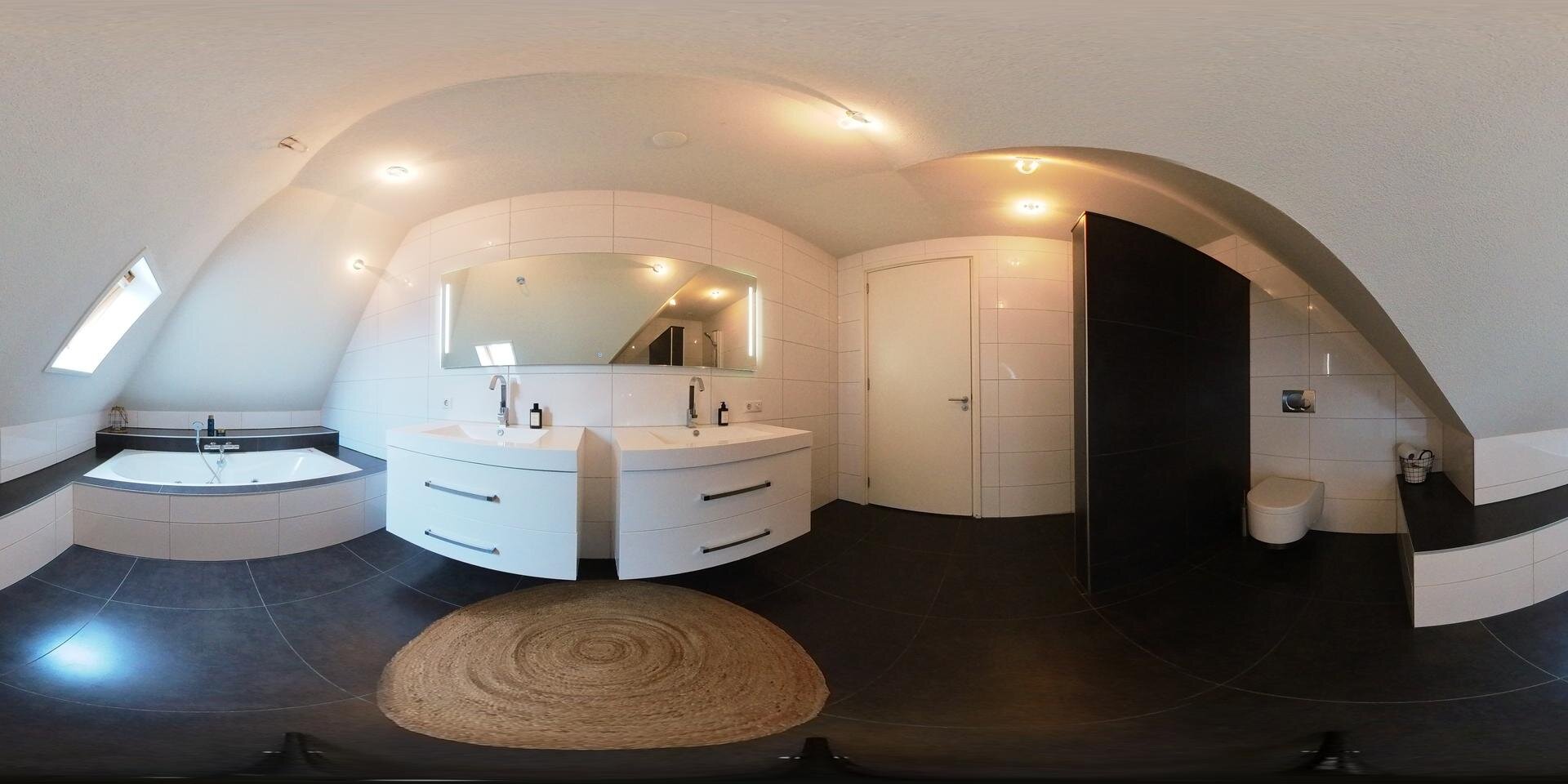 Aangrenzend is de luxe badkamer in een tijdloze kleurstelling met een inloopdouche, een tweede toilet, een bad met bubbels en een tweetal wastafelmeubels. Terug naar de overloop, hieromheen liggen de slaapkamers, in totaal zijn het er vier en ze zijn allemaal zeer ruim en met en dakkapel. Via de vlizotrap bereik je de ruime bergzolder. De overloop geeft ook extra ruimte voor een werkruimte of speelplek voor de kinderen.