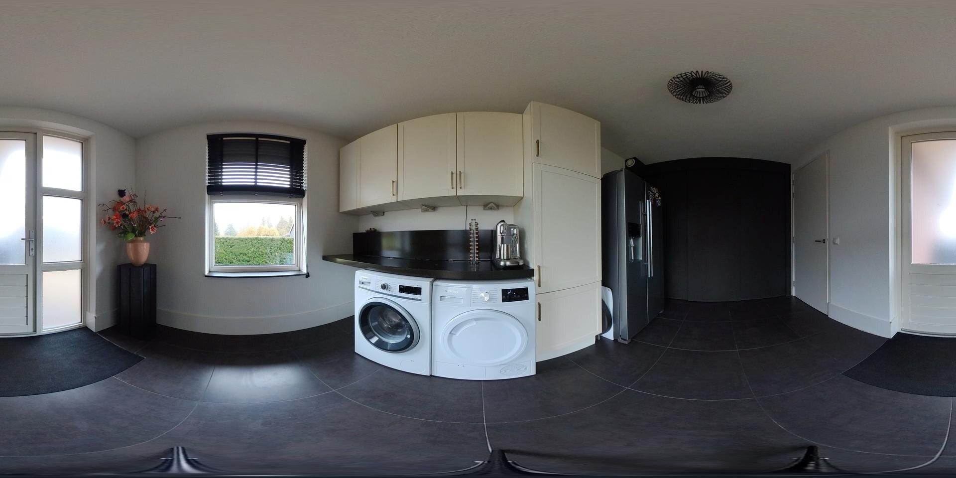 De keuken is in een open verbinding met de living maar zou ook eenvoudig afsluitbaar te maken zijn met een glazen schuifwand. Deze keuken is de ideale place to be, met openslaande tuindeuren naar het terras. Hier kun je landen met elkaar aan het einde van een werkdag. Hier kun je samen koken en vrienden ontvangen rond het kookeiland. De keuken is luxe met als extra een dubbele oven met magnetronfunctie en een koffiemachine! De bijkeuken is een ruimte van ca. 12 m2 waar je alle ruimte vindt om de was te doen, veel op te bergen en ook is het een ruime binnenkomer achterom. Achter de schuifwand vind je de techniek met onder andere de hybride warmtepomp met boilervat.