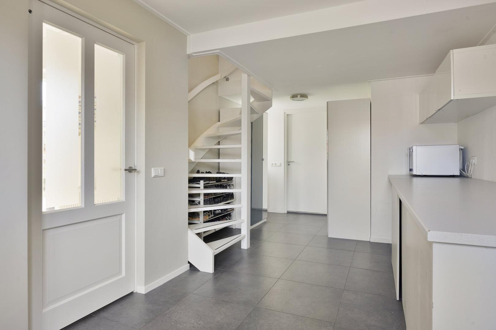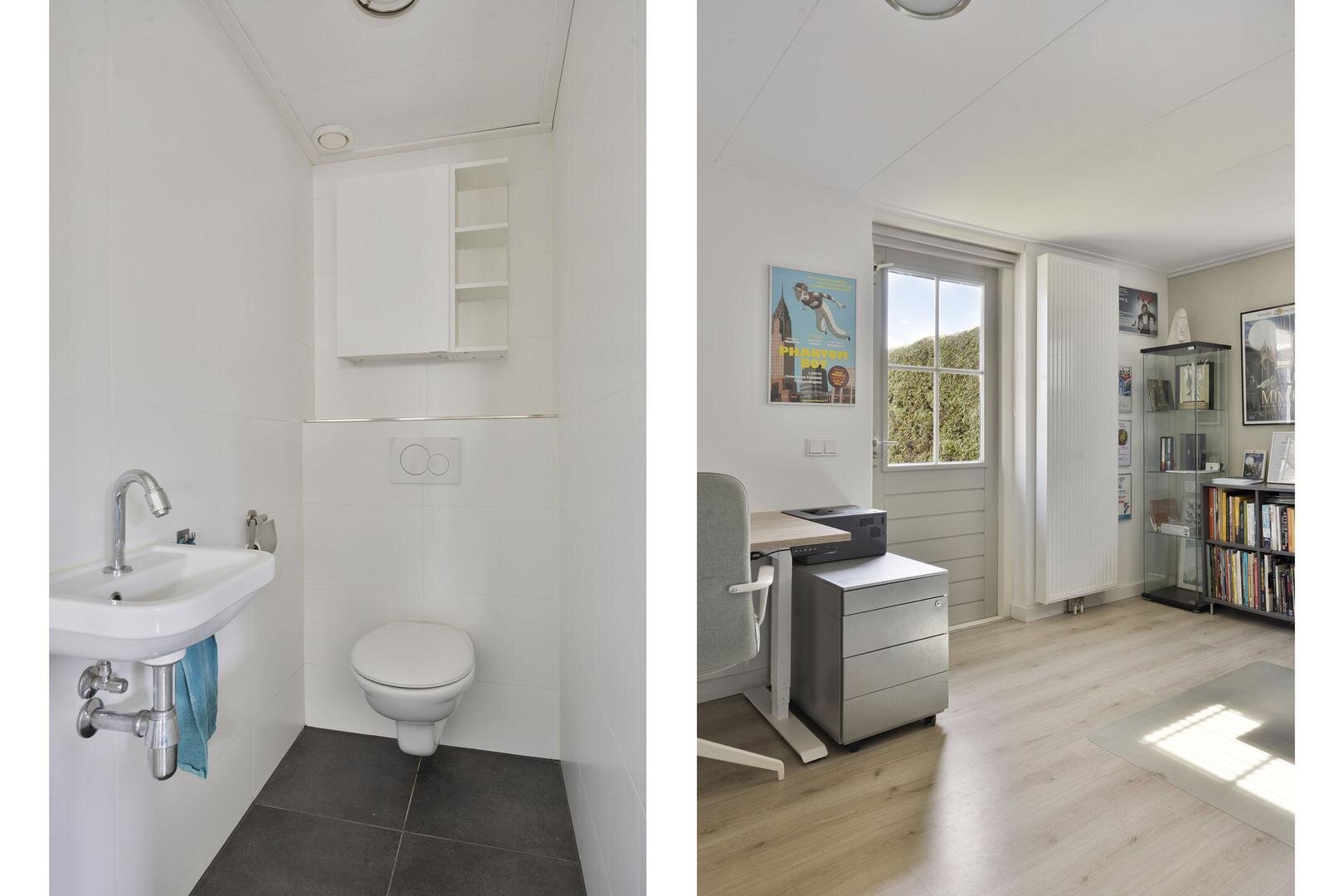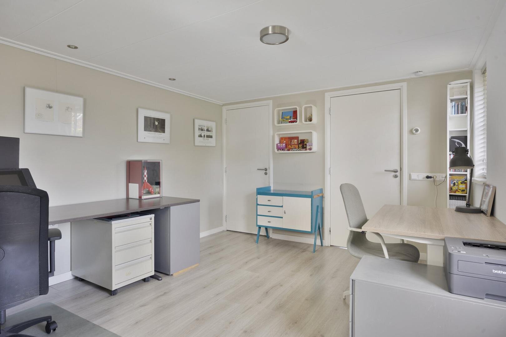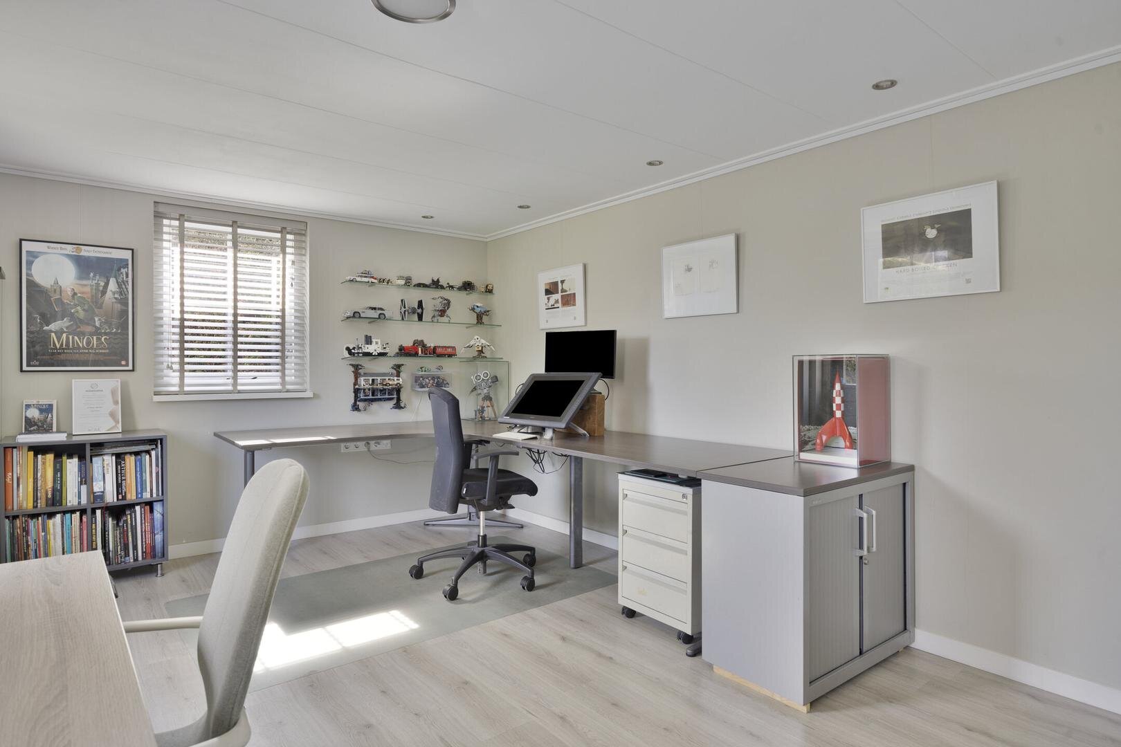 De trapopgang in deze ruimte voert naar een grote logeerzolder met nog een extra bergruimte. Het is de ideale plek voor de gasten van ver, of een leuke speelruimte voor de kinderen. Achter de bijkeuken zit een ruime werkkamer met een eigen deur naar de tuin en met een eigen toilet. Het is ook geschikt als slaapkamer en een badkamer is eenvoudig te realiseren, dus ook levensloopbestendige opties zijn mogelijk.