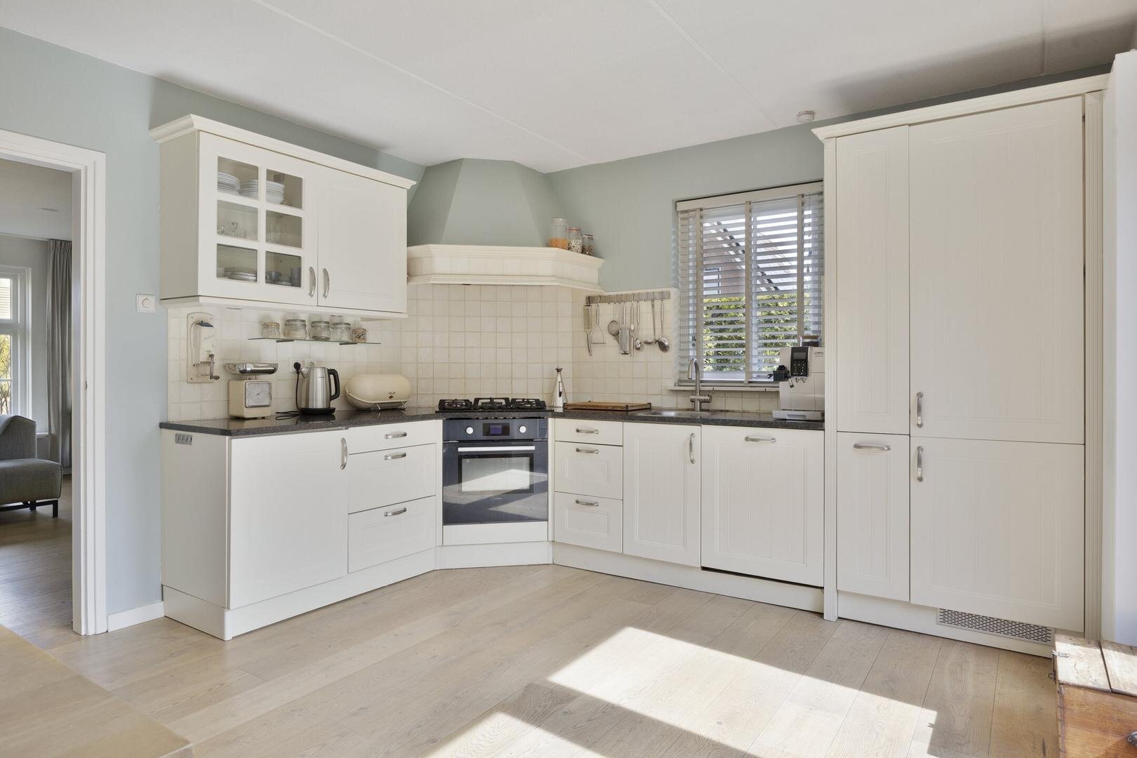 We nemen je graag mee via de entree en ruime hal. Daar vind je de garderobe met de trapopgang en een toilet met fontein. De sfeervolle woonkamer met houten vloer is in een L-vorm en de deur met glas in Lood valt op. Je vindt er hoge ramen met roedes in het glas en brede vensterbanken. Het geheel ademt een gezellige en landelijke sfeer in lichte tinten. De keuken is gesloten en is een gezellige woonkeuken met tuindeuren en met zicht op de tuin. De keuken is in dezelfde landelijke sfeer en heeft diverse inbouwapparatuur. Via de keuken komen we in de ruime bijkeuken met een spoelkeuken met veel berg- en wasruimte en met een deur naar de oprit.
